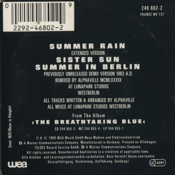 € 17.00 Media: Very Good Plus (VG+)Alphaville – Summer Rain (CD, Mini, Single)