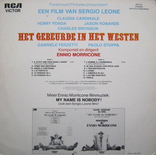 € 8.50 Media: Very Good Plus (VG+)Hoes: Very Good (VG)Ennio Morricone – Het Gebeurde In Het Westen (LP, Album)