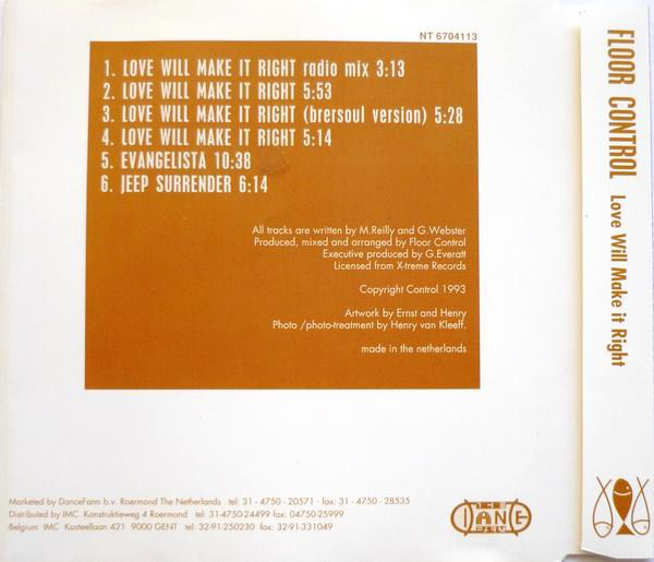 € 12.00 Media: Very Good Plus (VG+)Hoes: Very Good (VG)Floor Control – Love Will Make It Right (CD, Maxi)