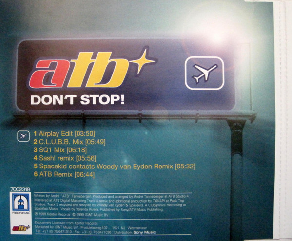 € 19.50 Media: Very Good (VG)Hoes: Very Good Plus (VG+)ATB – Don’t Stop! (CD, Maxi)