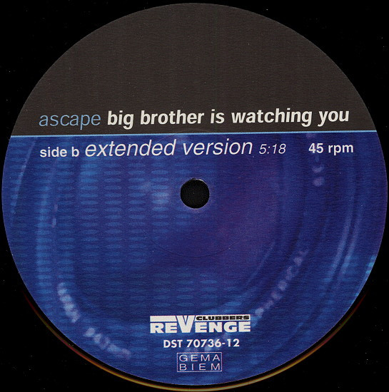 € 8.50 Media: Very Good Plus (VG+)Hoes: Very Good Plus (VG+)Ascape – Big Brother Is Watching You (12″)