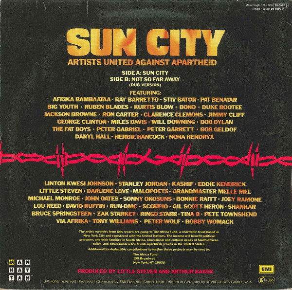 € 5.00 Media: Very Good Plus (VG+)Hoes: Very Good Plus (VG+)Artists United Against Apartheid – Sun City (12″, Maxi)