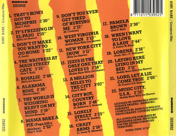 € 5.00 Media: Very Good (VG)Hoes: Very Good (VG)Bobby Bare – Greatest Hits (CD, Comp)