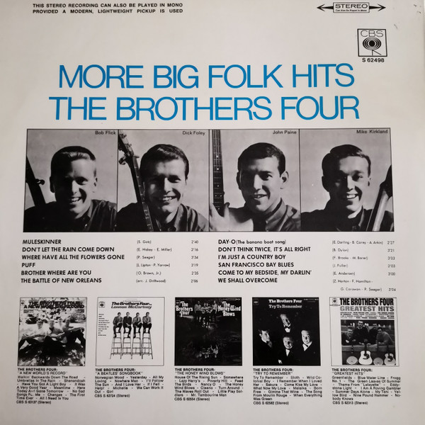 € 4.50 Media: Very Good (VG)Hoes: Very Good Plus (VG+)The Brothers Four – The Big Folk Hits (LP, Album, Mono)