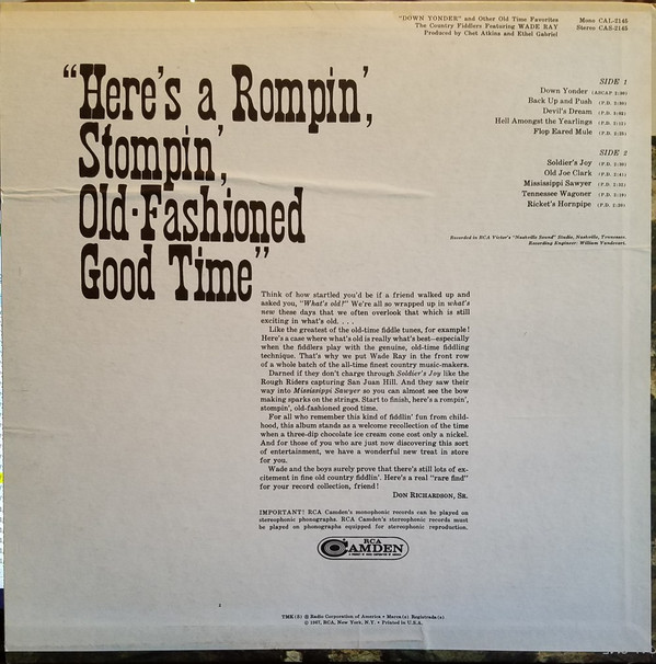 € 5.50 Media: Very Good Plus (VG+)Hoes: Good Plus (G+)The Country Fiddlers Featuring Wade Ray – Down Yonder And Other Old-Time Favorites (LP, Album, RE, Ste)