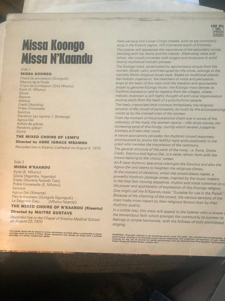 € 4.50 Media: Very Good Plus (VG+)Hoes: Very Good (VG)The Mixed Choirs Of Lemfu / The Mixed Choirs Of N’Kaandu (Kisantu)* – Missa Koongo / Missa N’Kaandu (LP, Album)