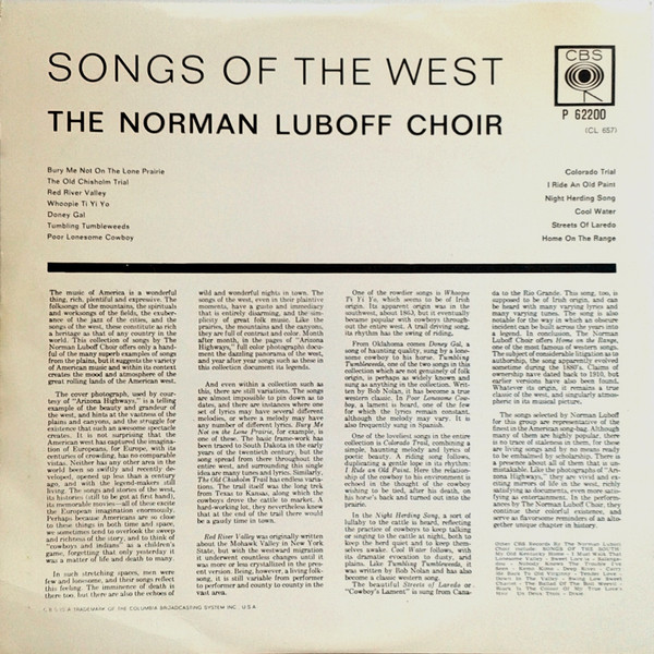 € 5.00 Media: Good Plus (G+)Hoes: Very Good Plus (VG+)The Norman Luboff Choir* – Songs Of The West (LP, Album)