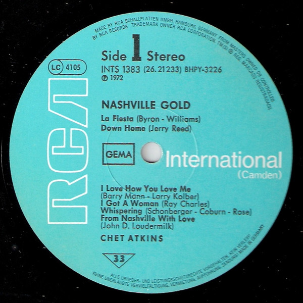 € 4.50 Media: Good Plus (G+)Hoes: Very Good Plus (VG+)Chet Atkins – Nashville Gold (LP, Album, RE)