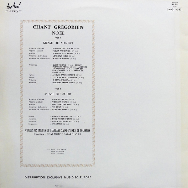 € 7.00 Media: Very Good Plus (VG+)Hoes: Very Good Plus (VG+)Chœur Des Moines De L’Abbaye Saint-Pierre De Solesmes ,Direction Dom Joseph Gajard – Chant Grégorien – Noel (LP, RE, Gat)