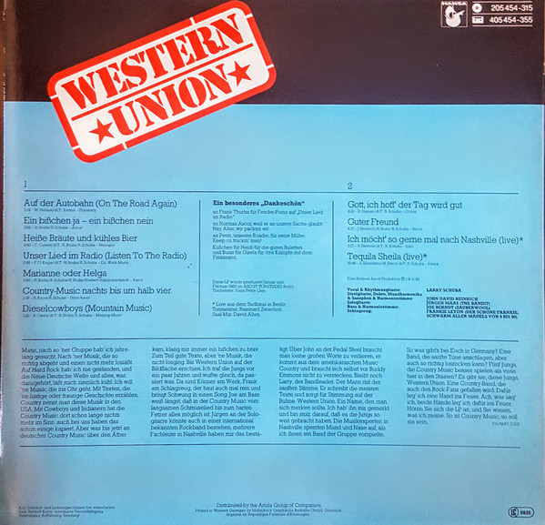 € 7.00 Media: Very Good Plus (VG+)Hoes: Very Good Plus (VG+)Western Union (3) – Country Music (LP, Album)