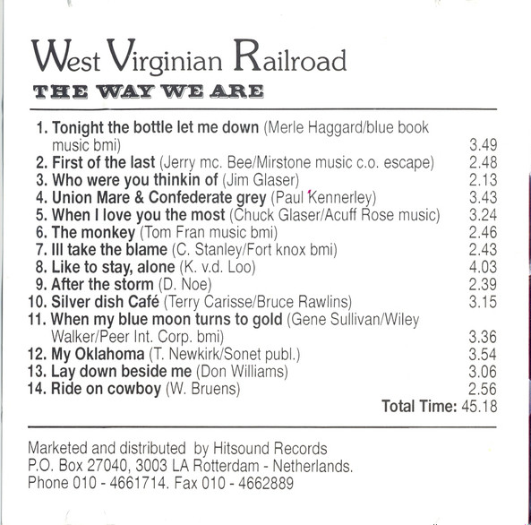 € 3.00 Media: Good (G)Hoes: Very Good (VG)West Virginian Railroad – The Way We Are (CD, Album, RE)