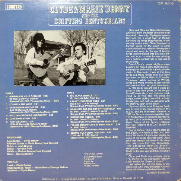 € 9.00 Media: Very Good Plus (VG+)Hoes: Very Good Plus (VG+)Clyde & Marie Denny and the Drifting Kentuckians – Clyde & Marie Denny And The Drifting Kentuckians (LP, Album)