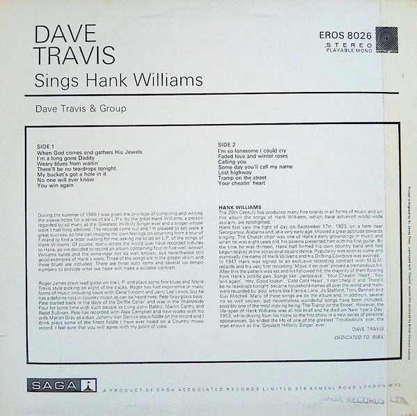 € 9.50 Media: Very Good Plus (VG+)Hoes: Very Good (VG)Dave Travis (2) – Dave Travis Sings Hank Williams (LP, Album)