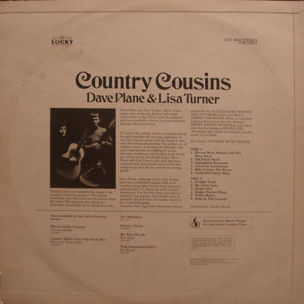 € 9.50 Media: Very Good Plus (VG+)Hoes: Very Good (VG)Dave Plane & Lisa Turner – Country Cousins (LP)