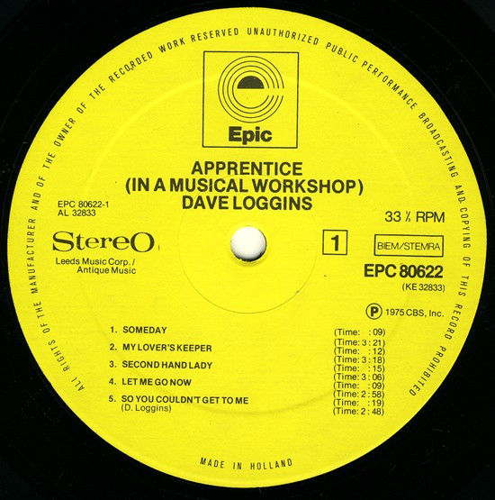 € 8.50 Media: Very Good Plus (VG+)Hoes: Very Good Plus (VG+)Dave Loggins – Apprentice (In A Musical Workshop) (LP, Album)