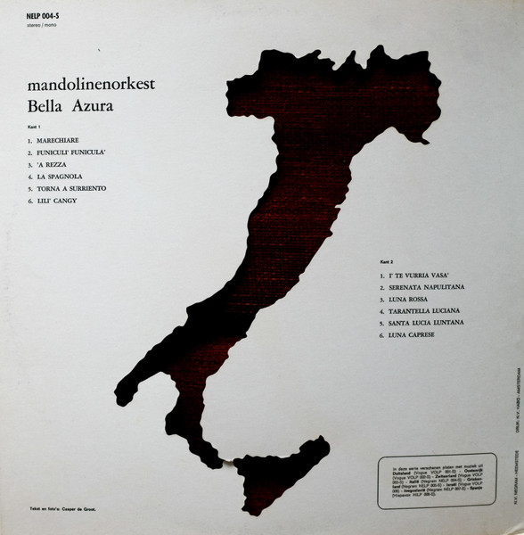 € 4.00 Media: Very Good Plus (VG+)Hoes: Good Plus (G+)Das Mandolinenorchester Bella Azura* – Italia (LP)