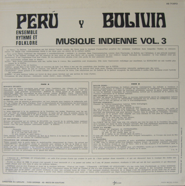 € 4.50 Media: Very Good (VG)Hoes: Very Good (VG)Ensemble Rythme Et Folklore – Perú Y Bolivia (LP, Album)