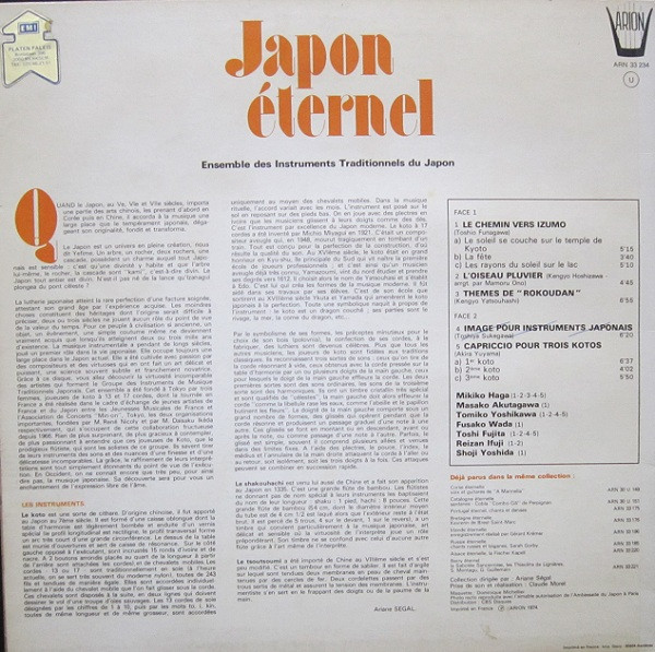 € 7.50 Media: Very Good (VG)Hoes: Very Good (VG)Ensemble Of Traditional Musical Instruments Of Japan – Japon Éternel (LP)