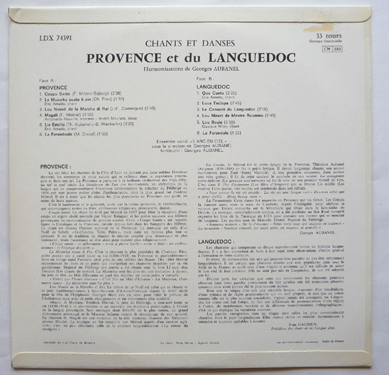 € 7.50 Media: Near Mint (NM or M-)Hoes: Very Good Plus (VG+)Ensemble Vocal “L’Arc-En-Ciel”* Sous La Direction De Georges Aubanel – Chants Et Danses De Provence Et Du Languedoc (LP, RE)