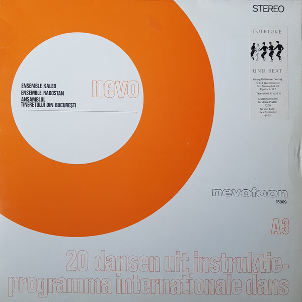 € 8.50 Media: Very Good Plus (VG+)Hoes: Very Good Plus (VG+)Ensemble Kaleb, Ensemble Radostan, Ansamblul Tineretului Din București – 20 Dansen Uit Instruktieprogramma Internationale Dans A3 (LP, Album)