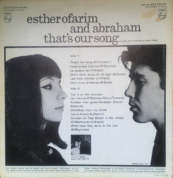 € 2.95 Media: Good (G)Hoes: Fair (F)Esther & Abi Ofarim – That’s Our Song (LP, Album, Mono)