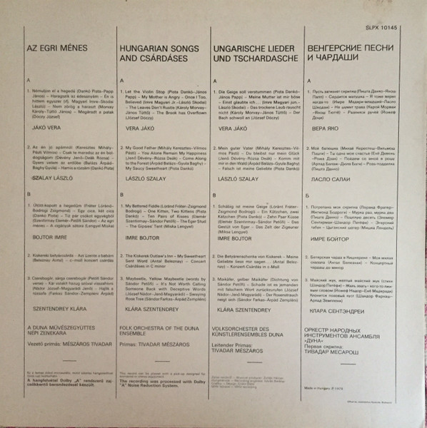 Folk Orchestra Of The Duna Ensemble, Mészáros Tivadar – Az Egri Ménes… – Hungarian Songs And Csárdáses (LP, Comp)