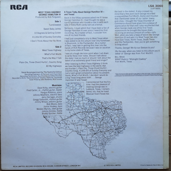 € 6.50 Media: Very Good Plus (VG+)Hoes: Good Plus (G+)George Hamilton IV – West Texas Highway (LP, Album)