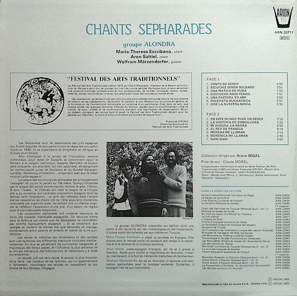 € 6.50 Media: Very Good (VG)Hoes: Very Good Plus (VG+)Groupe Alondra – Chants Sépharades (LP)