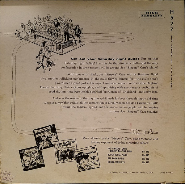€ 8.50 Media: Very Good Plus (VG+)Hoes: Very Good Plus (VG+)Joe “Fingers” Carr And His Ragtime Band – Fireman’s Ball (10″, Album)