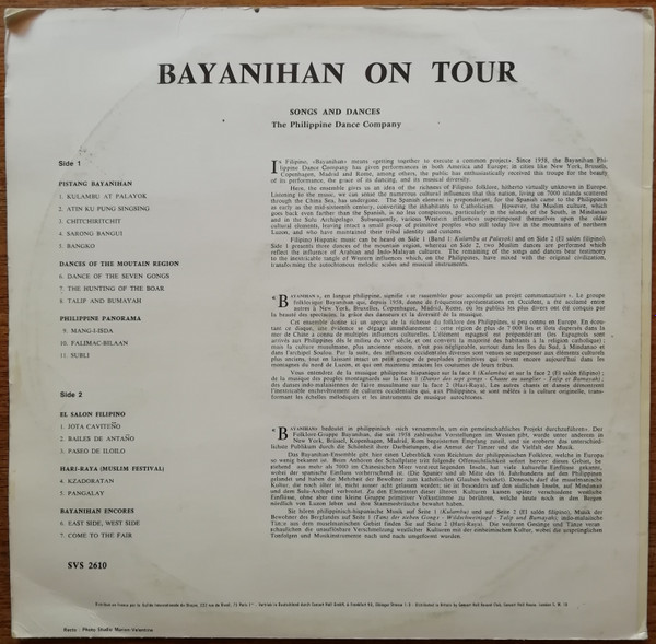 € 9.50 Media: Near Mint (NM or M-)Hoes: Very Good (VG)Bayanihan* – Bayanihan On Tour: Songs And Dances (LP)