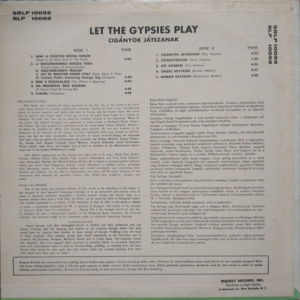 € 10.00 Media: Near Mint (NM or M-)Hoes: Very Good Plus (VG+)Bela Babai & His Fiery Gypsies – An Evening At The Chardas (LP, Album)