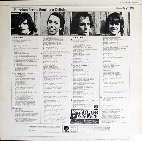 € 7.50 Media: Very Good Plus (VG+)Hoes: Very Good Plus (VG+)Barefoot Jerry – Southern Delight (LP, Album)