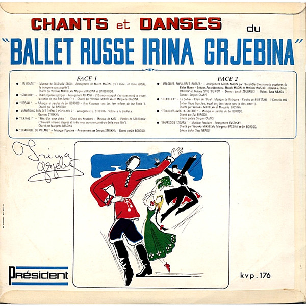 € 9.50 Media: Very Good Plus (VG+)Hoes: Very Good Plus (VG+)Ballet Russe Irina Grjebina – Chants Et Danses (LP, Album)