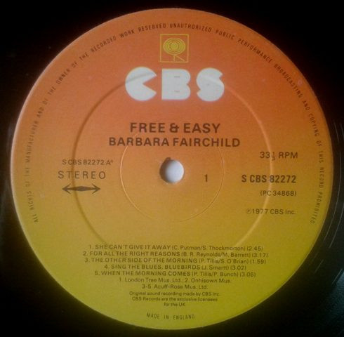 € 7.00 Media: Very Good Plus (VG+)Hoes: Very Good Plus (VG+)Barbara Fairchild – Free & Easy (LP, Album)