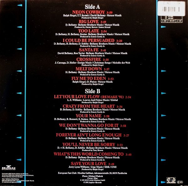 € 2.50 Media: Fair (F)Hoes: Very Good (VG)Bellamy Brothers – Let Your Love Flow (LP, Album)