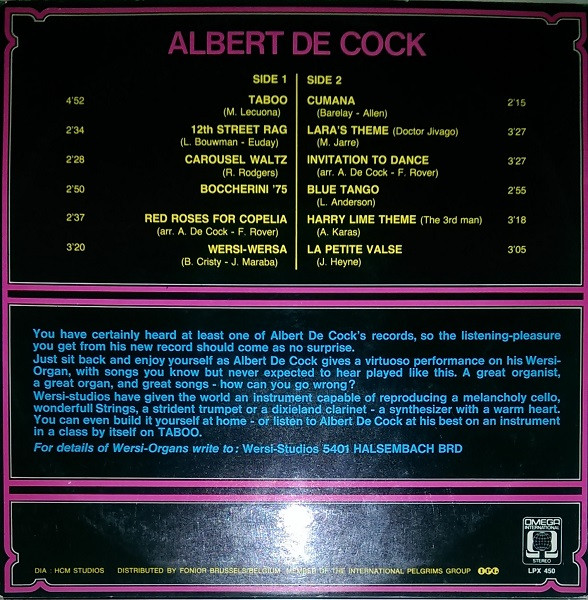 € 37.00 Media: Very Good (VG)Hoes: Very Good (VG)Albert De Cock – Taboo (LP)