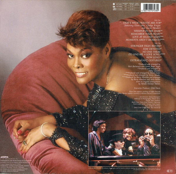 € 3.50 Media: Good Plus (G+)Hoes: Very Good Plus (VG+)Dionne & Friends Featuring Elton John, Gladys Knight And Stevie Wonder – That’s What Friends Are For (12″, Maxi)