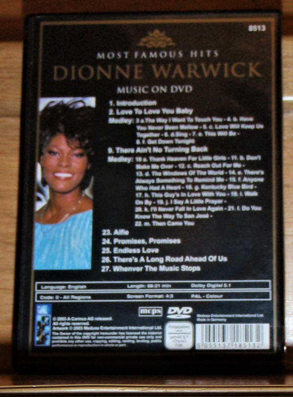€ 6.50 Media: Very Good Plus (VG+)Hoes: Very Good (VG)Dionne Warwick – Most Famous Hits – The Lady – Live (DVD-V, PAL)