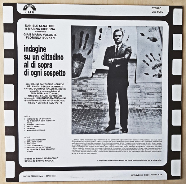 € 28.50 Media: Very Good Plus (VG+)Hoes: Good Plus (G+)Ennio Morricone – Indagine Su Un Cittadino Al Di Sopra Di Ogni Sospetto (Colonna Sonora Originale Del Film) (LP, Album, RE)