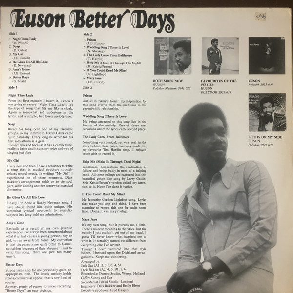 € 2.95 Media: Good Plus (G+)Hoes: Very Good Plus (VG+)Euson – Better Days (LP)
