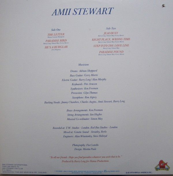 € 7.00 Media: Very Good (VG)Hoes: Very Good Plus (VG+)Amii Stewart – Paradise Bird (LP, Album, Gat)