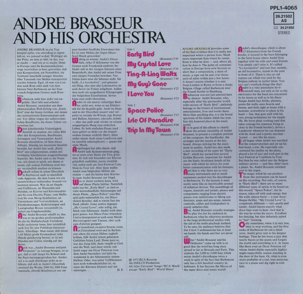 € 5.00 Media: Good (G)Hoes: Very Good (VG)André Brasseur And His Orchestra – Early Bird (LP)
