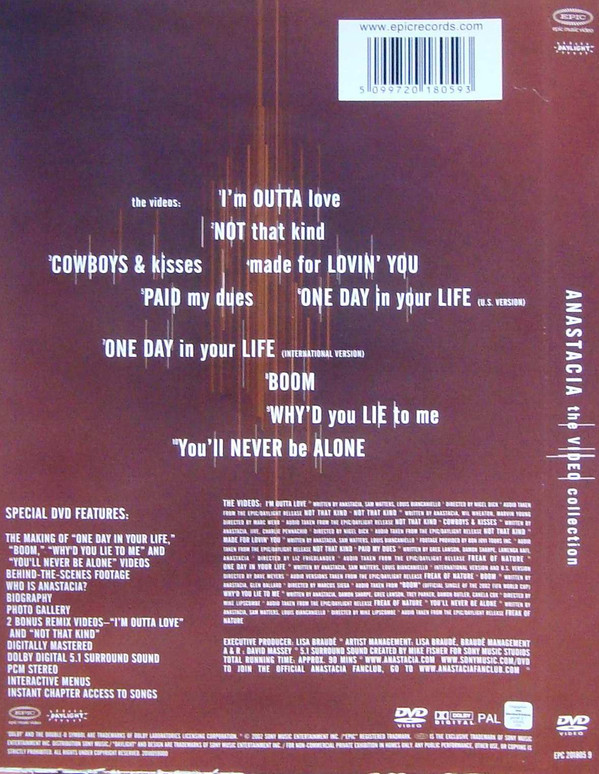 € 7.50 Media: Very Good Plus (VG+)Hoes: Very Good Plus (VG+)Anastacia – The Video Collection (DVD-V, Comp, Multichannel, PAL, FSK)