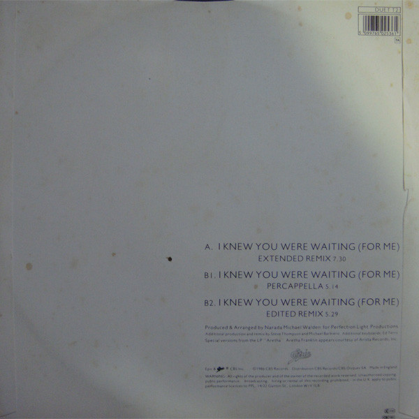 € 9.00 Media: Very Good (VG)Hoes: Good Plus (G+)Aretha Franklin & George Michael – I Knew You Were Waiting (For Me) (12″, Maxi)