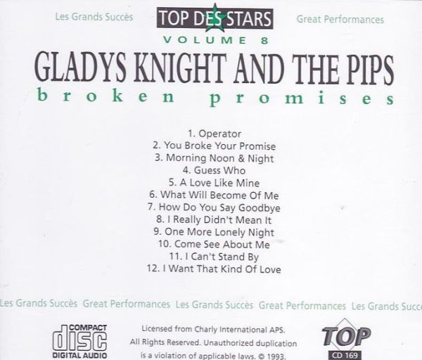 € 10.00 Media: Near Mint (NM or M-)Hoes: Very Good Plus (VG+)Gladys Knight And The Pips – Broken Promises (CD, Comp, RE)