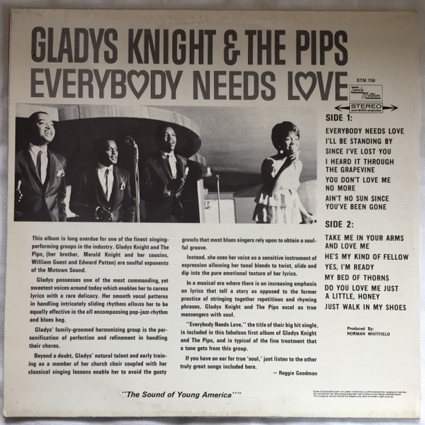 € 9.50 Media: Near Mint (NM or M-)Hoes: Very Good Plus (VG+)Gladys Knight And The Pips – Everybody Needs Love (LP, Album)