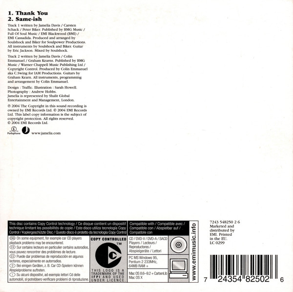€ 4.50 Media: Very Good Plus (VG+)Hoes: Very Good Plus (VG+)Jamelia – Thank You (CD, Single, Copy Prot.)
