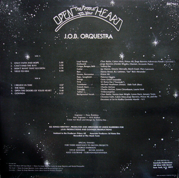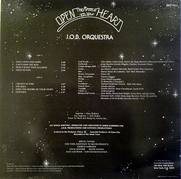 € 22.00 Media: Very Good Plus (VG+)Hoes: Near Mint (NM or M-)J.O.B. Orquestra – Open The Doors To Your Heart (LP, Album)