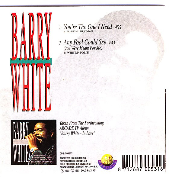 € 2.50 Media: Fair (F)Hoes: Very Good Plus (VG+)Barry White – You’re The One I Need (CD, Single)