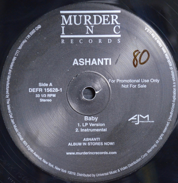 € 6.00 Media: Good Plus (G+)Hoes: Very Good Plus (VG+)Ashanti – Baby (12″, Single, Promo)